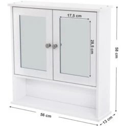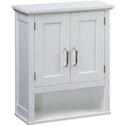 Homcom Mobiletto Pensile Da Bagno Con 2 Ante E Specchiera In MDF Bianco 60 X 75 X 15cm