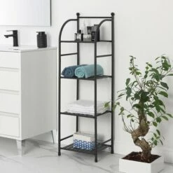 Scaffale Bagno H 116 In Metallo Design Nero Con Quattro Ripiani