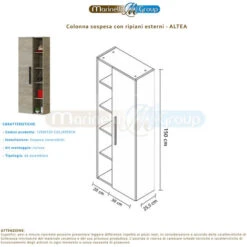 Colonna Bagno Sospesa H. 140 Cm 2 Ante Serie Oasi Rovere In Kit Di Montaggio