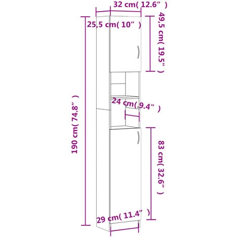 - Dimensioni: 32 x 25,5 x 190 cm (L x P x A)