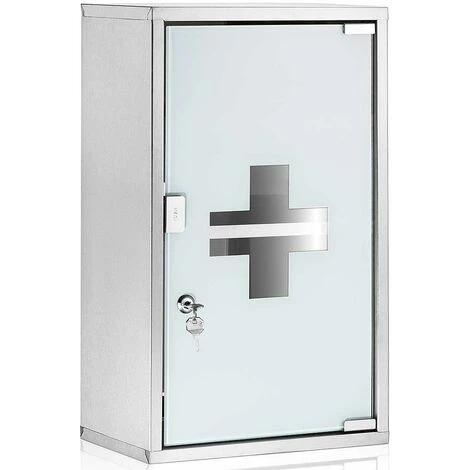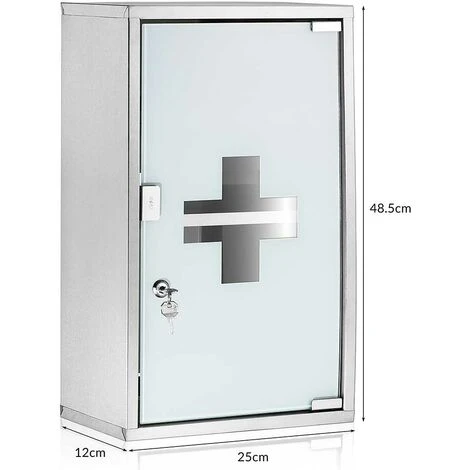 Questo armadietto porta medicinali in acciaio inox può essere posizionato in bagno, ripostiglio, ufficio e attività commerciali. Con vetro satinato temperato e dotato di mensola.