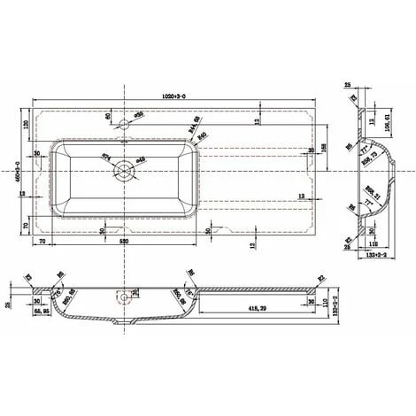 lavandino in mineralmarmo 102x46cm (vasca da 52x27x13 cm)