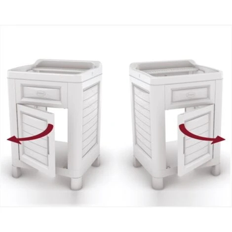Innovativo. robusto. elegante. Realizzato in resina 100% riciclabile e completo del kit sifone per un’immediata installazione. Piano regolabile e sportello frontale posizionabile con apertura a dx o sx permettendo così l’inserimento in qualsiasi angolo della casa. Facilissimo da montare. da pulire e idoneo per installazioni anche all’esterno.