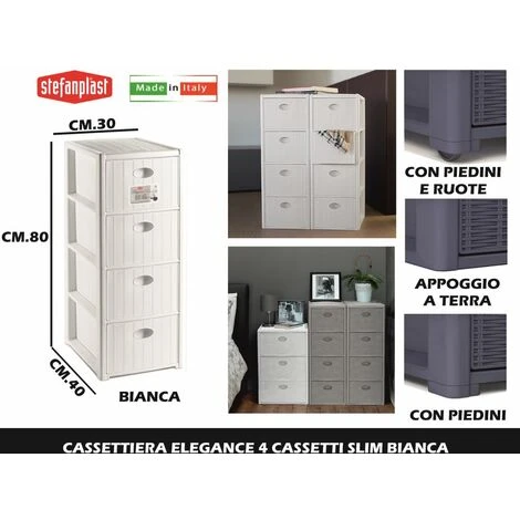 CASSETTIERA ELEGANCE SLIM 4 CASSETTI BIANCA