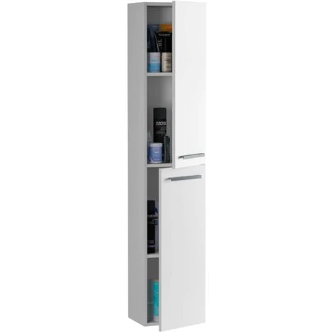 STRUTTURA E UTILIZZO – Guardaroba per bagno sospeso a due ante e due ripiani regolabili in altezza – Le ante hanno possibilità di apertura verso destra o verso sinistra a seconda delle necessità – Internamente la struttura modulare degli scaffali permette di sfruttare al meglio lo spazio – A seconda delle esigenze della casa e alle sue funzioni, questo mobile contenitore è perfetto per arredare ripostiglio, lavanderia, bagno o spogliatoio contenendo qualsiasi tipo di prodotto.