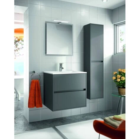 Colonna bagno sospesa in legno grigio opaco