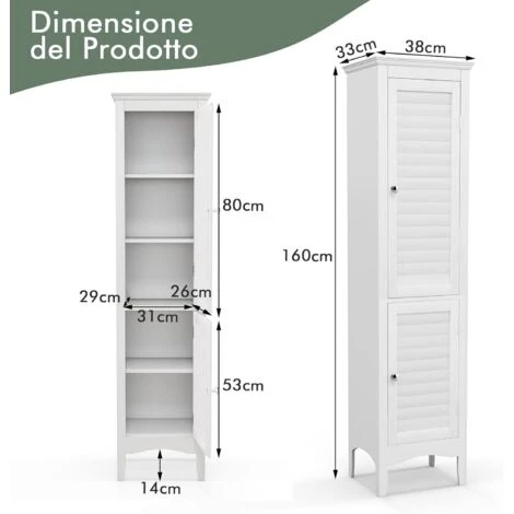 - Dimensioni complessive: 38 x 33 x 160 cm (L x P x A)