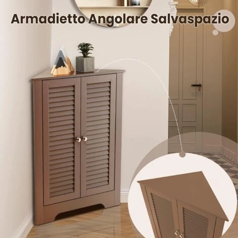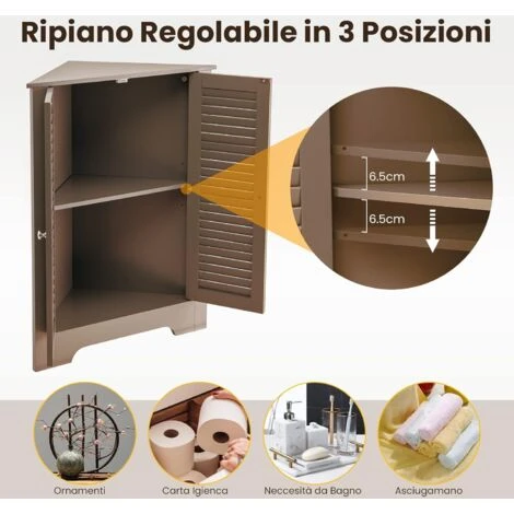 Siete stufi di avere una stanza disordinata? Questo mobiletto salvaspazio fa proprio al caso vostro ! L’armadietto a 3 ripiani si adatta perfettamente all’angolo, aggiungendo spazio di archiviazione extra in stanze piccole come bagno, cucina, camera da letto o ingresso. Inoltre, il ripiano centrale all’interno è regolabile in tre altezze, il che significa che è possibile creare uno spazio di archiviazione appropriato per diversi oggetti. Inoltre, il design della porta a persiana non solo rende il contenitore elegante e raffinato, ma garantisce anche una buona ventilazione.