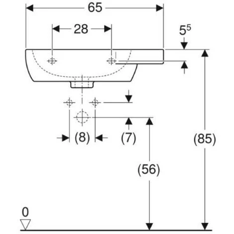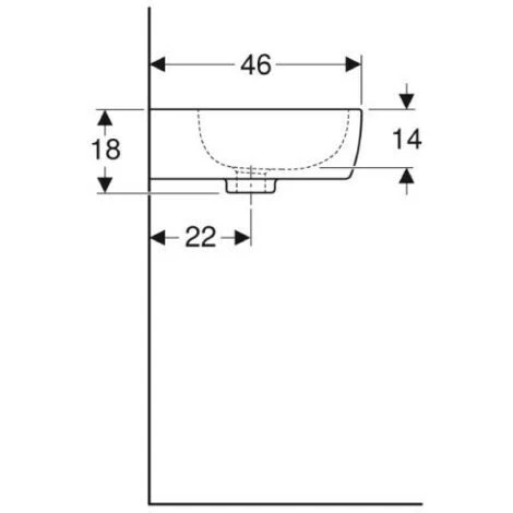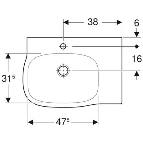 Geberit serie Fantasia Lavabo sospeso 65 cm. in Gres Fine Porcellanato, con ripiano d’appoggio a destra, colore bianco, con 1 foro per rubinetto, con troppopieno. Dimensioni: Lunghezza/Profondit� = 46 cm. | Larghezza = 65 cm. | Altezza = 18 cm.