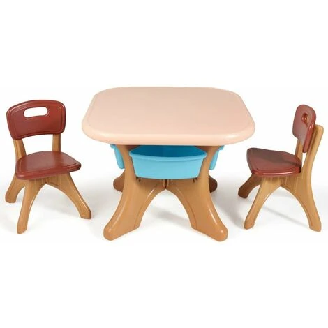 Questo set di mobili per bambini è composto da un tavolo e due sedie in polietilene resistente ed è stato appositamente progettato per bambini dai 2 ai 6 anni. Lo spazioso piano del tavolo offre abbastanza spazio per giocare, fai da te, dipingere e studiare. 4 contenitori offrono ulteriore spazio. Il set ha un design colorato e adatto ai bambini, con angoli e bordi arrotondati e può essere utilizzato per diversi scopi.