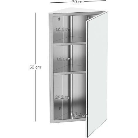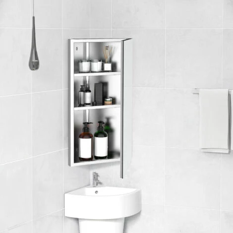Stai cercando una soluzione salvaspazio per il tuo salotto? Questo armadietto da bagno angolare HOMCOM è perfetto per te! Senza cornici, cerniere o infissi a vista, ti offre una superficie 100% riflettente, ideale per valorizzare anche gli spazi più ristretti. Al suo interno hai a disposizione 3 comodi ripiani in acciaio inox per riporre tutti i tuoi prodotti da bagno, come lo spazzolino da denti, il rasoio, il dopobarba e il profumo. Riorganizza il tuo bagno con questo mobiletto pratico e funzionale!
