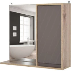 Rigenera il look del tuo bagno con questo armadietto HOMCOM! Costruito con pannelli di legno ingegnerizzato color rovere, è dotato di uno specchio di 34L x 48Acm con mensola inferiore, e di un armadietto con due ripiani interni. Realizzato in perfetto stile minimal, ha dettagli essenziali ma curati, progettati per offrirti il massimo della funzionalità.