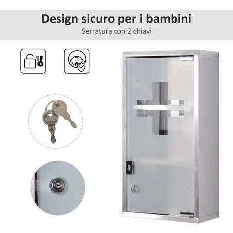 Questo armadietto pronto soccorso HOMCOM è un accessorio immancabile in casa e in ufficio, ed è perfetto per per contenere garze, cerotti, pastiglie e bottiglie di disinfettante. Puoi appenderlo all’altezza che desideri, per avere sempre i tuoi medicinali a disposizione in caso di necessità e tenerli lontani dalla portata dei bambini.