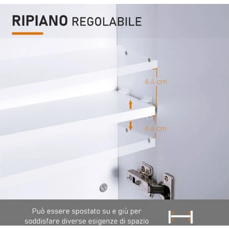 - Ripiani interni con altezza regolabile per riporre comodamente tutti i tuoi prodotti da bagno