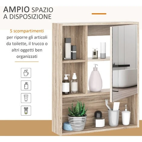 Decorate il vostro bagno con questo armadetto a specchio Kleankin per aggiungere spazio di ordinare. Il ripiano regolabile nel mobile permette di organizzare lo spazio secondo le proprie esigenze. I ripiani aperti offrono più spazio per mettemre oggetti da bagno, un’ottima combinazione di funzionalità e stile.