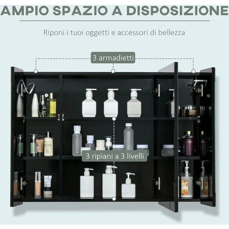 Se stai cercando un posto per prepararti al mattino e hai poco spazio libero in bagno, questo specchio da bagno kleankin con contenitore è proprio ciò che fa per te. Il design a parete evita di occupare spazio sul pavimento, mentre i ripiani consentono di riporre creme per il viso, trucchi o altri articoli per l’igiene quotidiana. Questo armadietto con specchio kleankin renderà meno caotica la tua routine mattutina.