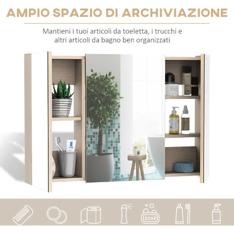Questo armadietto per medicinali da bagno kleankin offre uno spazio di archiviazione ampio e facile da installare. È caratterizzato da un elegante design a specchio con 5 ripiani interni per riporre tutti i tuoi oggetti essenziali da bagno. Realizzato in legno resistente atossico per un uso duraturo. È una soluzione ideale per mantenere il tuo bagno pulito, ordinato e organizzato.