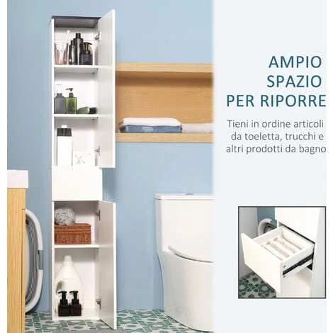 Massimizza lo spazio ed elimina il disordine con questo armadietto da bagno kleankin. Realizzato con un design moderno, è perfetto per il bagno, la cucina, il soggiorno e altre stanze. Realizzato con pannelli di truciolato e MDF solido, il mobiletto da bagno offre molto spazio per riporre asciugamani e articoli di uso quotidiano. Questo armadietto salvaspazio è ideale per l’uso in famiglia ed è rifinito con una chiusura antiribaltamento sul retro per evitare cadute in avanti.