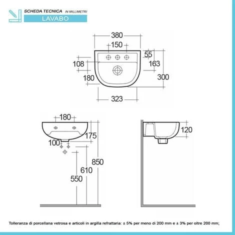 - Tolleranza di porcellana vetrosa e articoli in argilla refrattaria: ± 5% per meno di 200 mm e ± 3% per oltre 200 mm