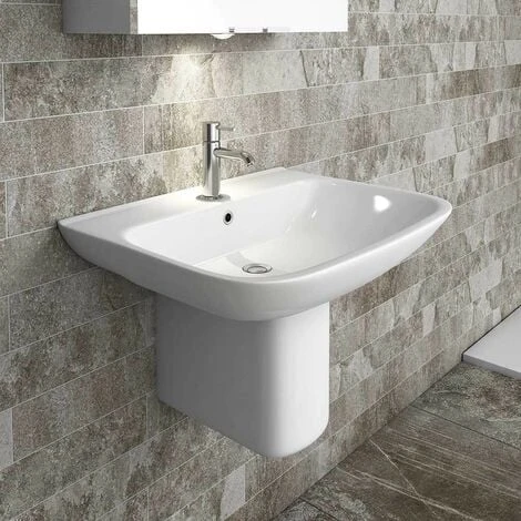 Lavandino bagno sospeso 65 cm con semicolonna in ceramica bianco lucido