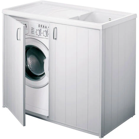 - Lavatoio coprilavatrice con mobile in PVC colore bianco 109×60 cm mod. Silvestro
