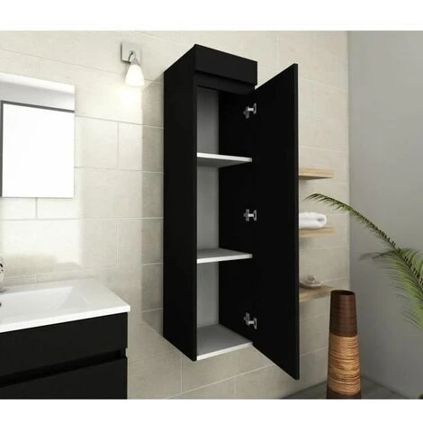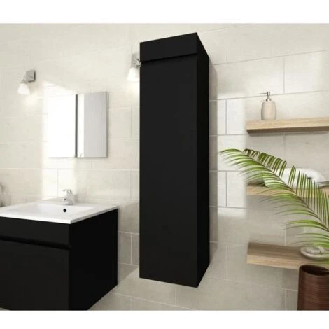 Colonna bagno LUNA – Colore nero opaco – Frontali e involucri in truciolare melaminico opaco 16 mm – Produzione europea – Garanzia del produttore 2 anni – Dimensioni colonna: 25x25x120 cm.
