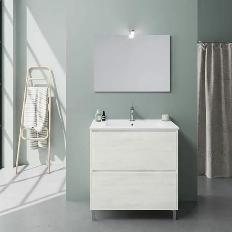 MOBILE BAGNO A TERRA 80 CM CON DUE CASSETTONI DI COLORE BIANCO