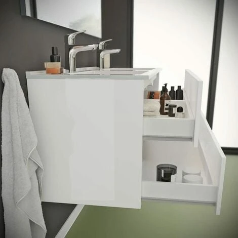 MOBILE BAGNO SOSPESO CON 4 CASSETTI BIANCO LUCIDO CON DOPPIO LAVABO IN CERAMICA