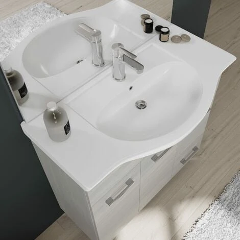 Un mobile bagno a terra, che si contraddistingue per la praticità, e che vi permetterà di mantenere sempre in ordine tutti i vostri oggetti per l’igiene personale. Tutto questo senza pregiudicare la qualità del mobile e la cura per i dettagli, come la delicata finitura in quercia grigio bordato in Abs con piedini e maniglie cromate, per un mobile in grado di donare un tocco di eleganza a qualsiasi ambiente in cui viene inserito. Nell’offerta non sono inclusi sifone e rubinetteria per il lavabo, acquistabili separatamente.