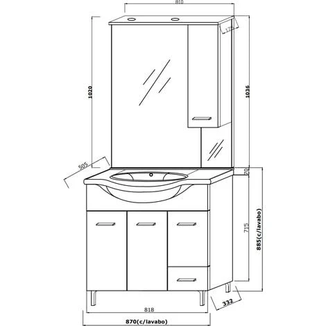 - Dimensione base: L 81,8 cm; P 33,2 cm; H 88,5 cm