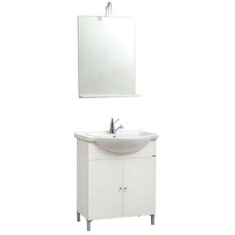 MOBILE BAGNO DESY completo di lavabo integrale, specchio con mensola ed Illuminazione. In MDF ricoperto di PVC, finitura bianca.