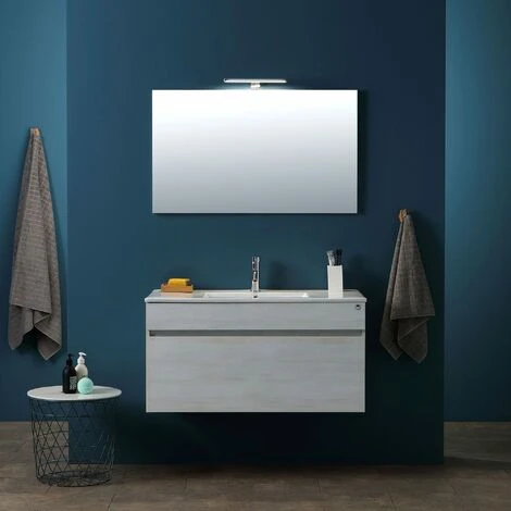 MOBILE BAGNO SOSPESO DA 100 CENTIMETRI CON CASSETONE IN LEGNO BIANCO