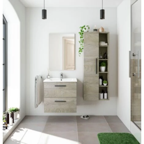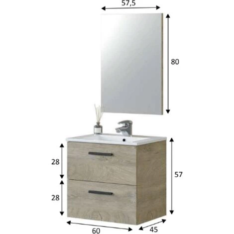 Mobile bagno sospeso 60 cm Rovere con lavabo e specchio