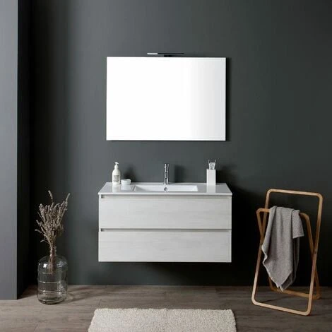 MOBILE BAGNO SOSPESO BERLIN 90 CM CON CASSETTI GRIGIO CHIARO