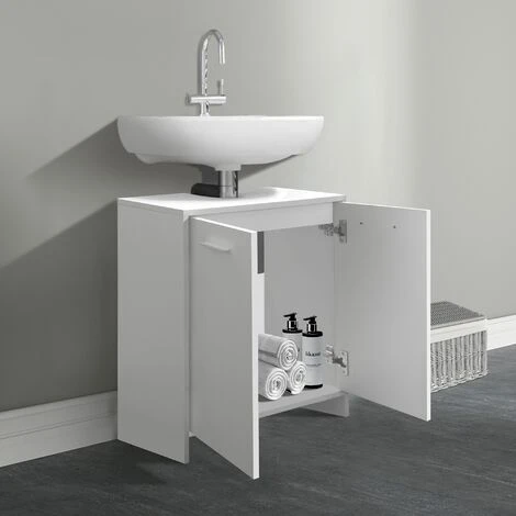 Il suo look elegante e d’atmosfera è perfetto per qualsiasi bagno. È fatto di pannelli MDF di alta qualità con una finitura in melamina che assicura un uso a lungo termine. Si possono facilmente conservare articoli per l’igiene come sapone, shampoo, dentifricio, ecc. Inoltre, il mobile lavabo è facile da pulire con un panno umido. Questo mobile elegante e funzionale è facile da montare grazie al materiale di montaggio fornito e dà al tuo bagno un ambiente moderno e tranquillo! Date al vostro bagno un ambiente elegante e moderno e un sacco di spazio per i vostri articoli da toeletta grazie a questo mobiletto! Il mobile lavabo ha una costruzione robusta e offre varie opzioni di stoccaggio e un uso pratico grazie allo spazio di stoccaggio dietro le porte.