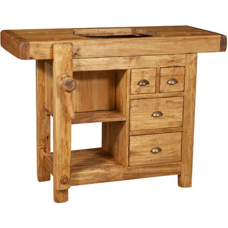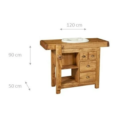 | Questo elegante, solido e robusto mobile da bagno prodotto in Italia da bravi artigiani è realizzato, di dimensioni lunghezza 120 cm, profondità 50 cm, altezza 90 cm, è il prodotto di un inusuale incontro tra un banco da falegname in legno massello e un lavabo in marmo bianco. Il banco da lavoro è interamente lavorato a mano in legno massello di tiglio spazzolato e ha una finitura con prodotti idrorepellenti resistenti all’acqua. Questa fedele replica dei tradizionali banconi da falegname si presta ad essere un funzionale ed esclusivo elemento di arredo in questa originale fusione con un lavabo realizzato dalla lavorazione di un unico blocco di marmo pregiato le cui caratteristiche sfumature ne fanno un pezzo unico. |
