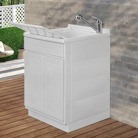 Il mobile lavatoio da esterno è un utilissimo accessorio per la lavanderia. Ha una vasca profonda 28 cm con troppo pieno e ha integrato un pratico piano di lavaggio ribaltabile ed estraibile.