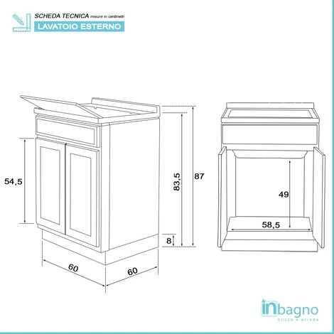 - Tipologia: mobile lavatoio con ampia vasca, 2 ante e tavoletta d’appoggio;