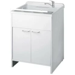 Mobile lavatorio lavapanni bianco 60×50 in resina completo di asse