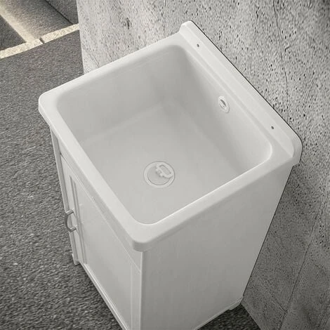 Massima comodità e pochissimo ingombro, questo mobile lavatoio è un complemento immancabile tra gli arredi lavanderia. È realizzato in resina, materiale particolarmente resistente agli acidi contenuti nei prodotti per la pulizia ed ai raggi UV. Se collocato negli ambienti esterni la sua tenuta è garantita anche se esposto al sole o ad altri agenti atmosferici.