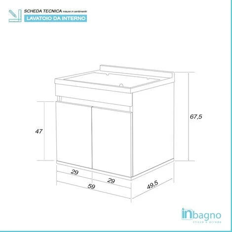 - Dimensioni vasca: L 59,3 x P 49,8 x H 31,4 cm