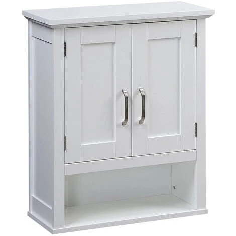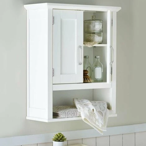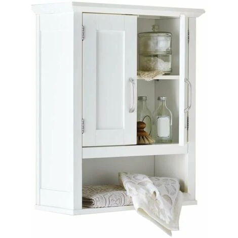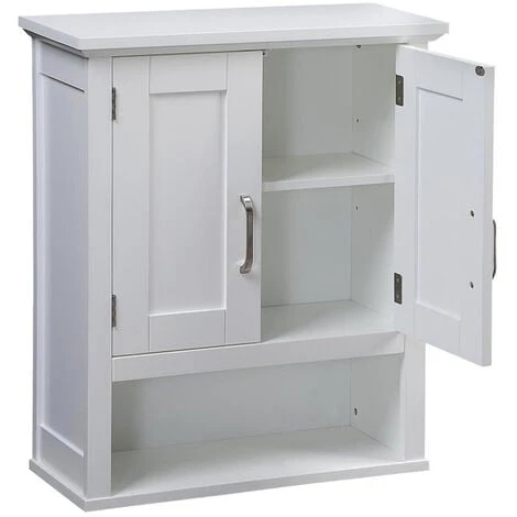 1 x Mobile Pensile da Parete Bagno Mobiletto Armadietto Legno MDF Bianco 2 Ante