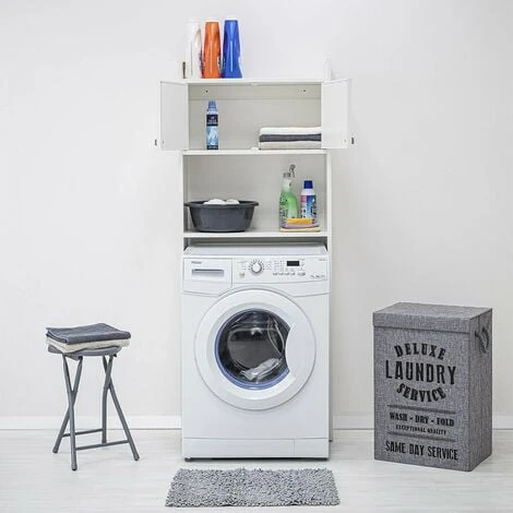 Mobiletto sopra lavatrice in pvc ad alta resistenza dalla finitura bianca in kit di montaggio ideale per ambienti esterni