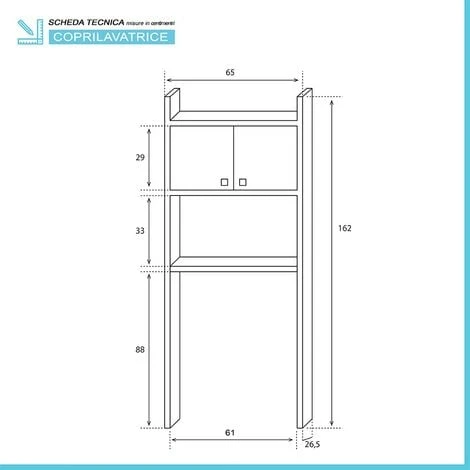 - Dimensioni: L 65 x P 26,5 x H 162 cm