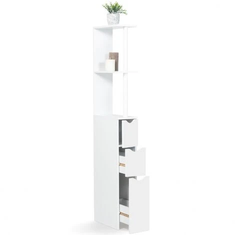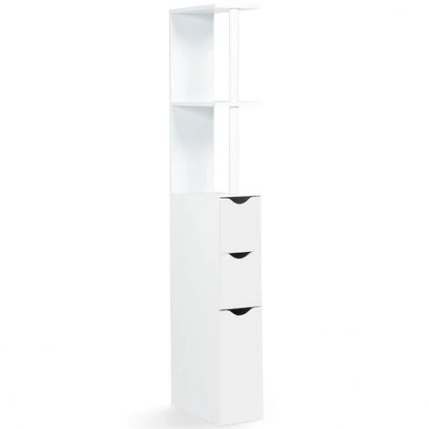 Questo mobile è realizzato in legno rivestito in melamina ed è ideale per riporre in modo funzionale i propri oggetti in bagno, nella lavanderia o nella toilette.Questo mobile a 3 ante con ripiani è molto compatto e offre molto spazio. Dimensioni: 136 cm di altezza, 33 cm di profondità e solo 15 cm di larghezza!I suoi tre scaffali (composti da 2 ripiani), l’armadietto e i due grandi cassetti offrono un ampio spazio di archiviazione! La parte inferiore, con le ante dell’armadio, consente di riporre i prodotti antiestetici: rotoli di carta igienica e prodotti per la pulizia…Questo modello dal design contemporaneo in legno melaminico bianco e ante bianche è la soluzione per riporre tutto a portata di mano anche in spazi ridotti!Dimensioni dei 3 scomparti chiusi:Armadio superiore: H.19,5 cm x L. 15 cm x P. 33 cm.Cassetto centrale: H.18,3 cm x L. 15 cm x P. 33 cm.Cassetto inferiore: H.36,5 cm x L. 15 cm x P. 33 cm.3 colori disponibili sul nostro negozio online: BIANCO / HETRE / GRIGIO