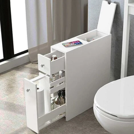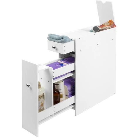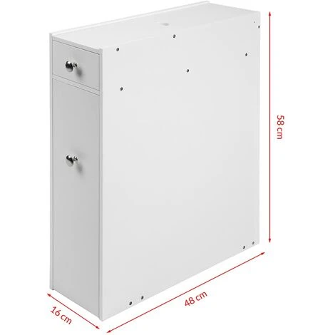 1 x Mobiletto Salvaspazio Bagno Mobile in Legno MDF Bianco con Cassetti 48x16x58cm