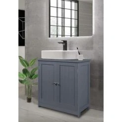 SoBuy Mobile Sottolavabo Per Bagno Con 2 Ante Mobili Bagno L60P30A60 Cm Grigio BZR18-DG