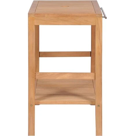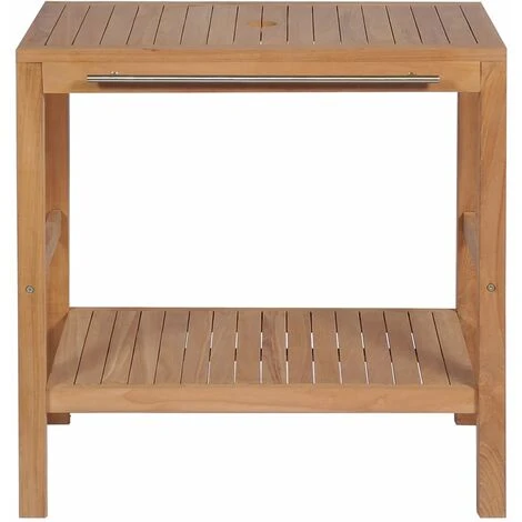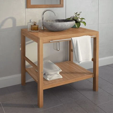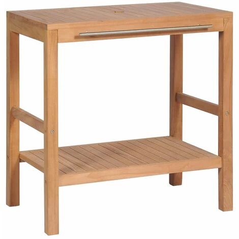 La bellezza di questo mobiletto da bagno sta nel suo stile lineare e semplice, che si abbinerà perfettamente all’arredo del vostro bagno. E’ dotato di un foro sul robusto piano superiore, progettato per il drenaggio del lavabo. Il mobiletto è realizzato in legno massello di teak, resistente a sufficienza per posizionare un lavabo sulla parte superiore insieme ad altri accessori da bagno. Il mobile da bagno è dotato di una maniglia per appendere asciugamani o indumenti, e di quattro gambe di supporto per garantire stabilità e impedire al pavimento di bagnarsi. Il mobiletto si adatterà perfettamente al vostro lavabo e sarà una comoda soluzione per il bagno. Al prodotto viene applicata una deliziosa finitura per donare al legno un colore caldo. Questo mobiletto deve essere assemblato.