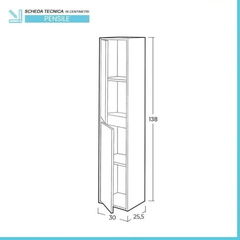 - Dimensioni: L 30 x p 25,5 x H 138 cm;