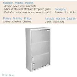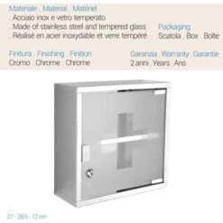 ARMADIETTO FARMACIA MAYDAY INOX CROMO METAFORM Cm 27 X H. 28.5 X 12